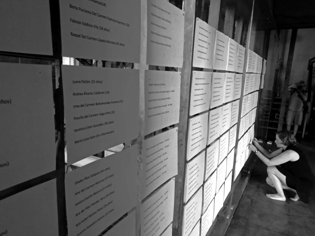 Esta obra retoma una reflexión propuesta en el año 2007 que se transformó en una de mis líneas de trabajo feminista: la denuncia. Cuando realicé la primera versión de esta obra (Festival Ensemble of woman de PerfoPuerto, Santiago de Chile) en Chile ya sumaban 40 femicidios. Ese mismo año acabó finalmente con 62. Y al momento de proponer la continuación de aquella obra y considerando los años que han pasado, la cifra se eleva a 738, aún cuando los registros oficiales contabilizan en fojas cero cada 1 de enero. Por ello, Ni una más II (2007-2019) se propone como una reflexión extendida a partir de aquella primera propuesta: para evidenciar, y, sobre todo, para reflexionar acerca del escaso avance en políticas públicas, considerando la magnitud del problema social.