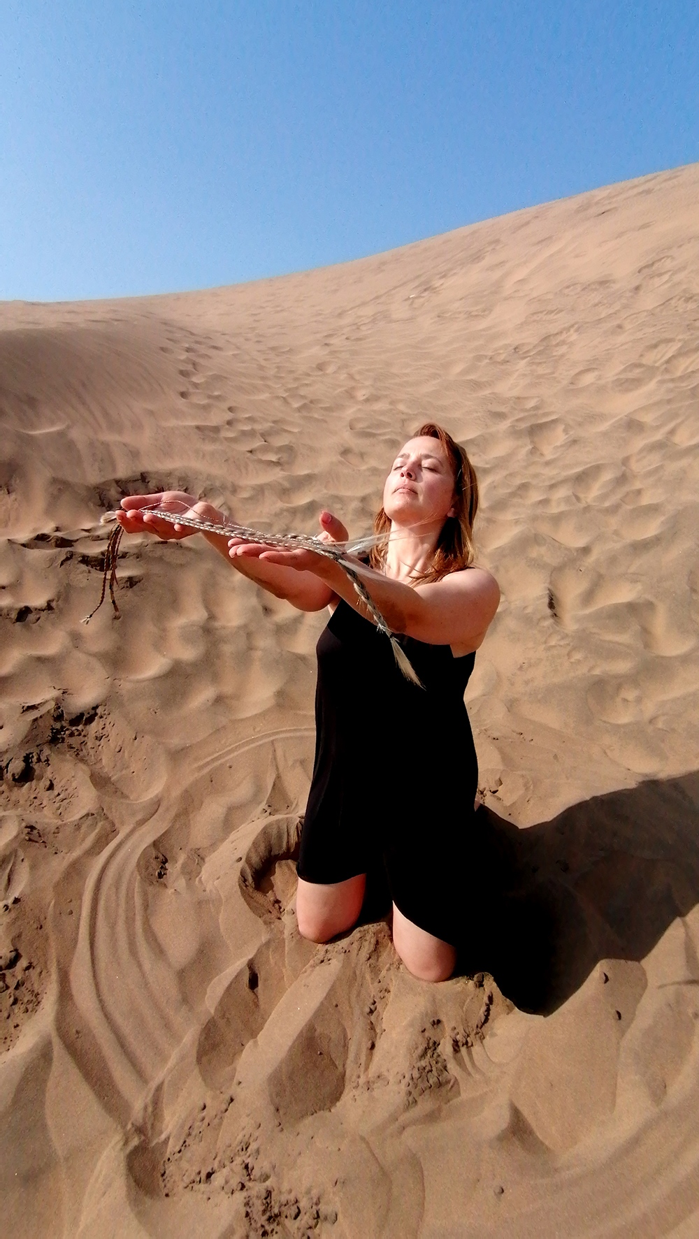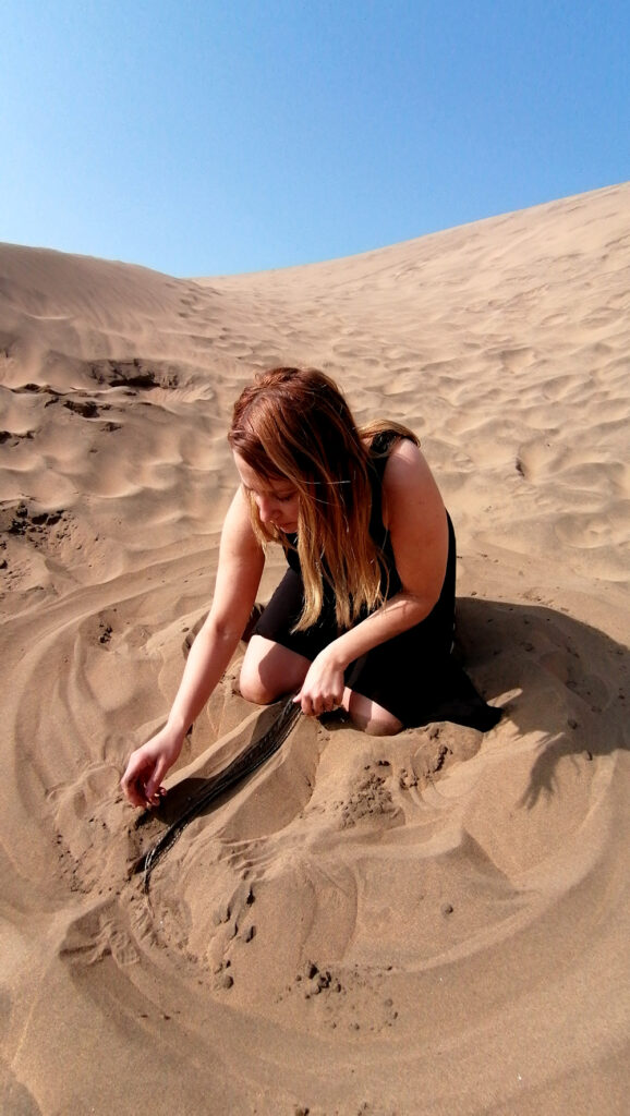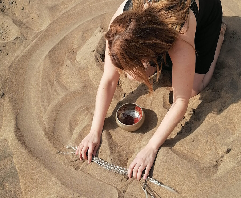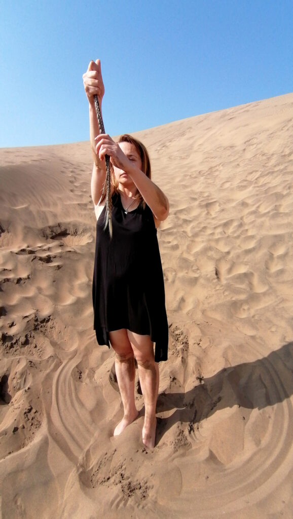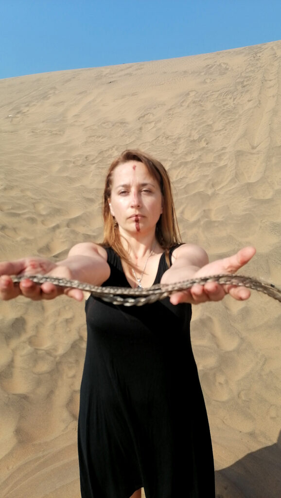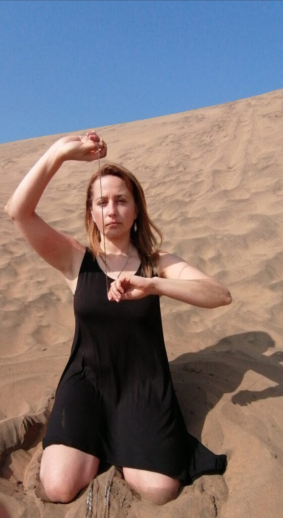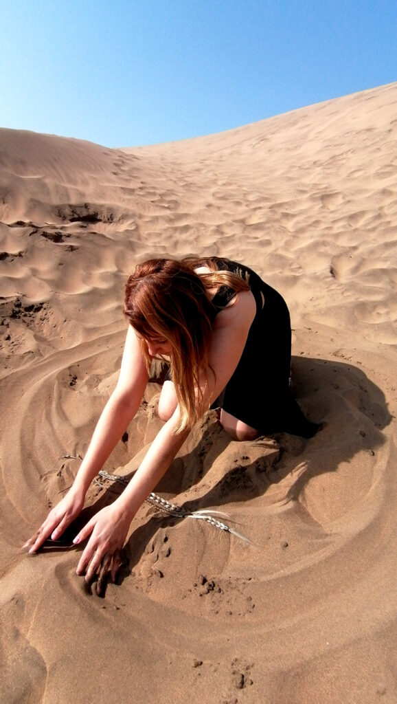 Serie de acciones que reflexiona a partir de la obra «Poéticas del origen», respecto de la ritualidad y la reconexión entre erotismo y espiritualidad. En esta acción se realiza un ritual de reconexión con la ancestralidad propia y de sanación con el territorio de Abya Yala, violentado, depredado y explotado de múltiples formas. En esta acción se reflexiona en torno a nuestra relación con la Madre Tierra, la ancestralidad y las genealogías, reconociéndolas como fuente primigenia para generar reflexiones, ampliar conocimientos y propiciar espacios de sanación, pero también de desprendimiento respecto de los roles impuestos.