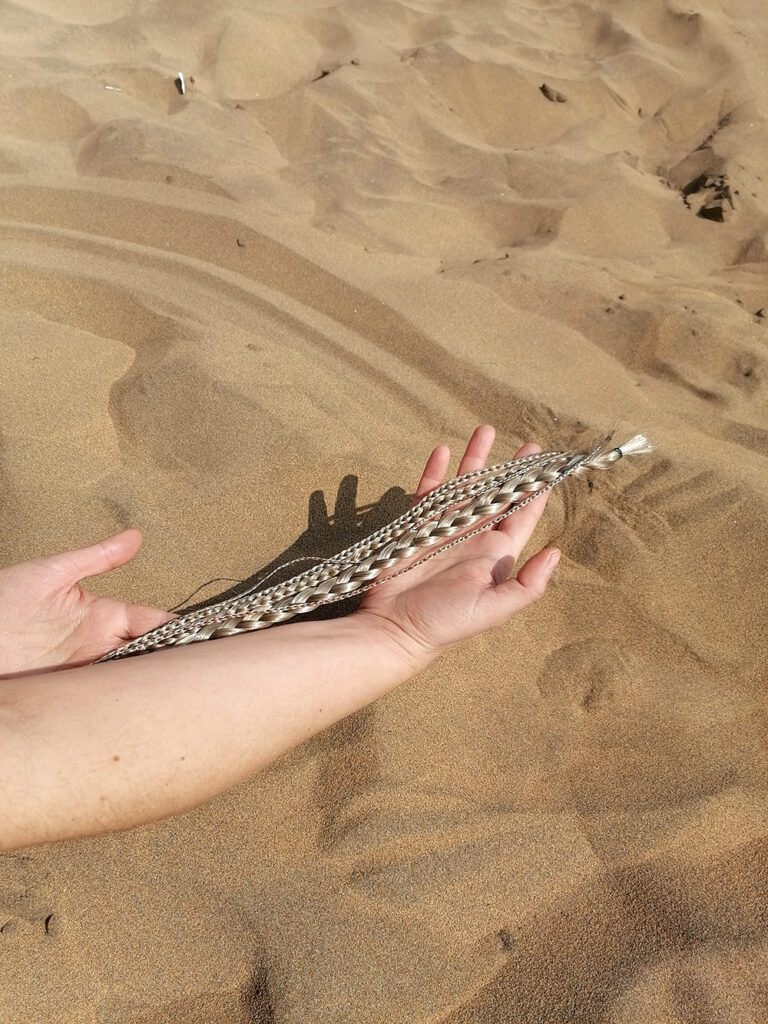 Materialidades: cabellos trenzados, sangre y tierra.