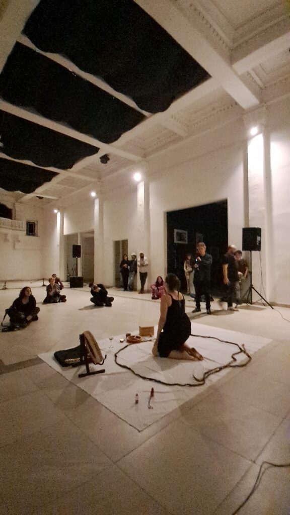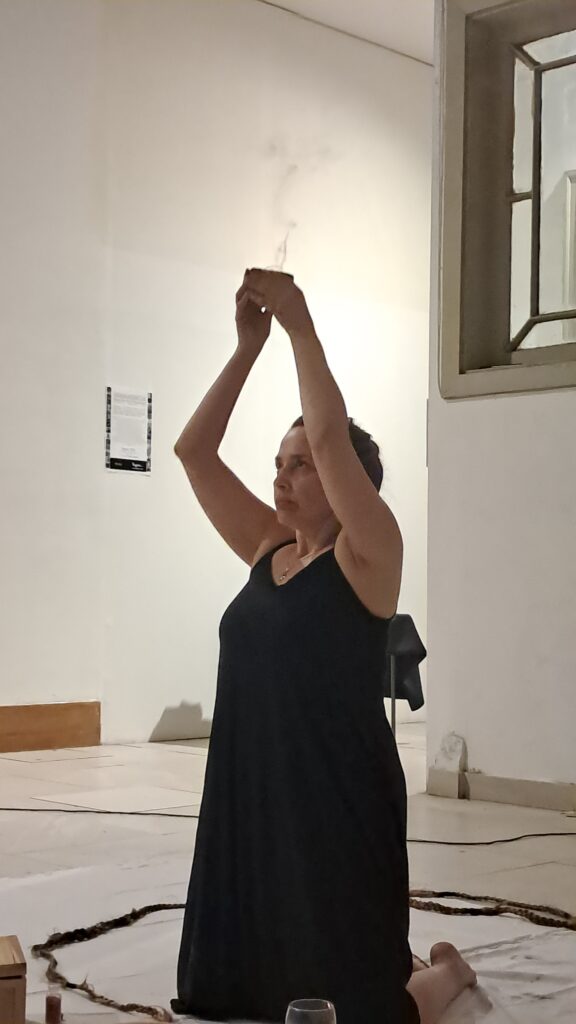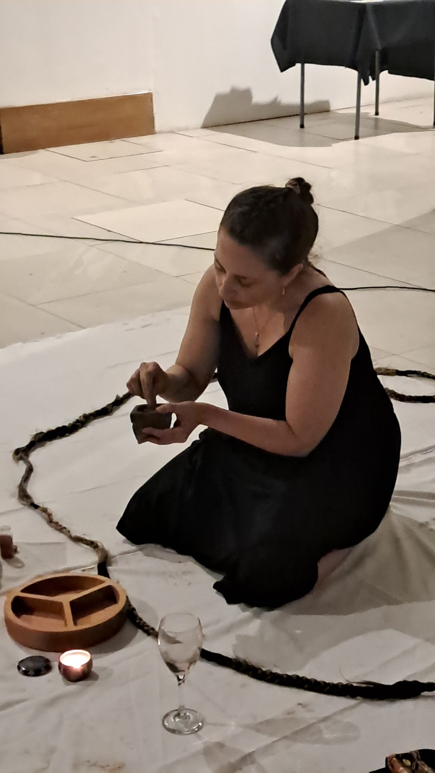 Esta performance es parte de una seria centrada en el autoconocimiento, el autocuidado, la sanación y la búsqueda de preguntas en torno a la memoria y los saberes ancestrales en el encuentro con otrxs.