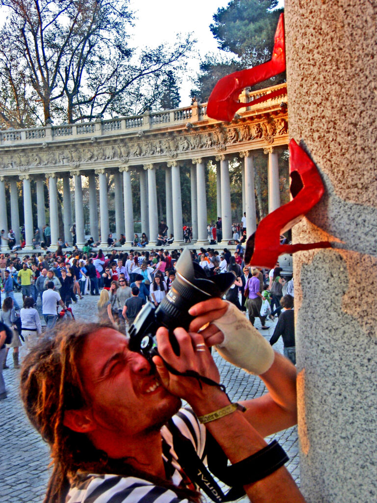 Este proyecto nace de la necesidad de “sacar la obra a la calle y realizar registros fotográficos de las personas que habitan la ciudad en interacción con la obra”. Corresponden a piezas que he trabajado desde el año 2003 y que hasta ahora han sido exhibidas como esculturas o como instalaciones, siempre al interior de Salas de Arte y Galerías de Arte de distintas ciudades en Chile, Argentina y durante el año pasado, también aquí en España (concurso para integrar la Colectiva Sección Transversal, Sala Espacio MenosUno, Madrid).