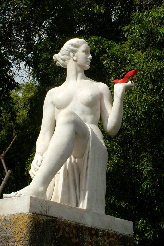 Corresponden a distintos zapatos de tacón fabricados en papel maché que recorren la ciudad.