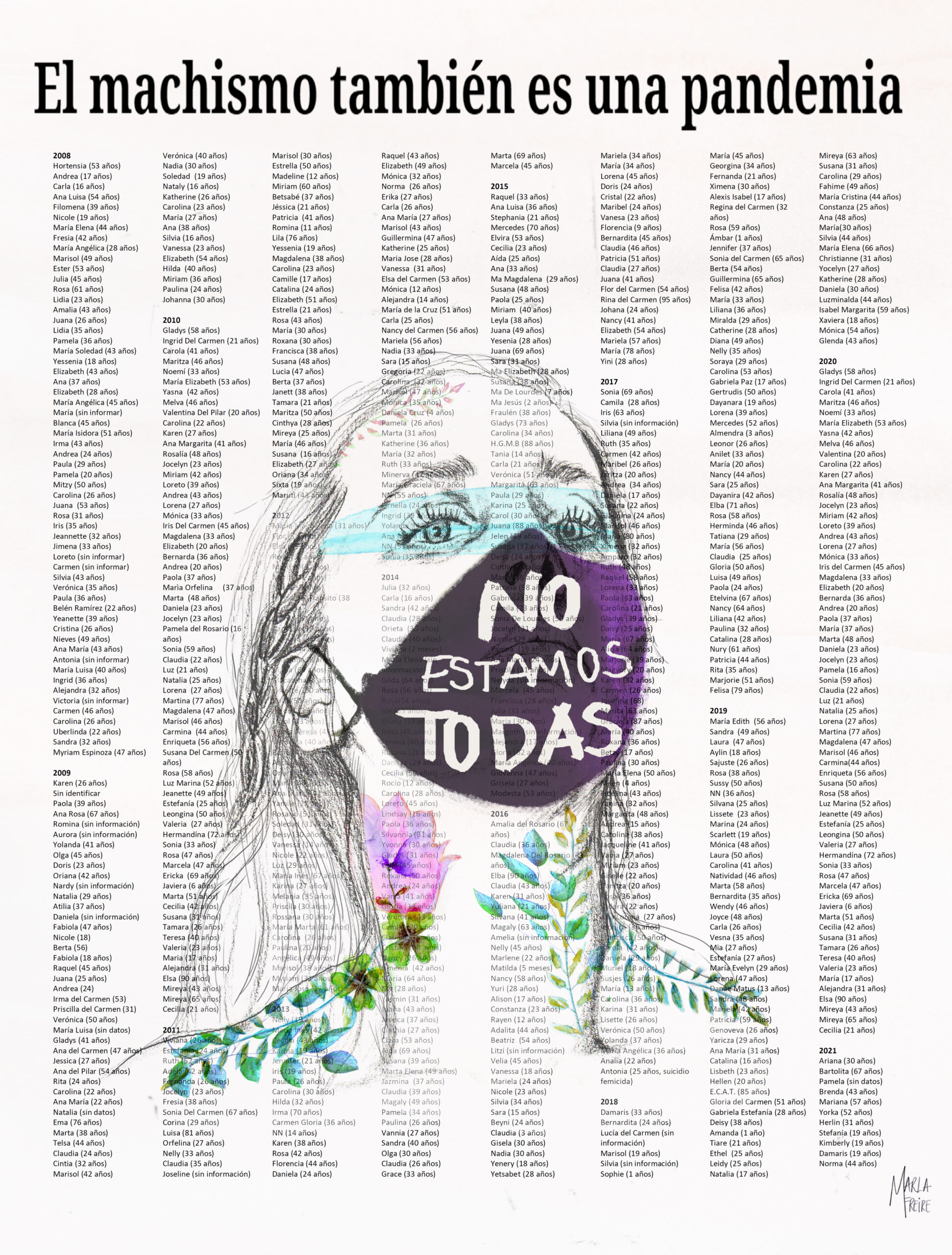 DIARIO OFICIAL: ESTA ERA YO, ESTA SOY YO. YO ES OTRAGrafito y acuarela sobre papel, montaje digital sobre pág del Diario Oficial de la República de Chile. 21,2 x 29,8 cm. MENOS MUSAS MÁS CREADORASDibujo y acuarela sobre papel. Edición digital.21,2 x 29,8 cm.2020 AUTORETRATO II,Dibujo en grafito sobre papel, montaje digital. 21,2 x 29,8 cm. NI LAS MUJERES NI LA TIERRA SOMOS TERRITORIO DE CONQUISTADibujo en grafito sobre papel, montaje digital. 21,2 x 29,8 cm.2021 QUE SEA LEY Dibujo en grafito sobre papel, montaje digital. 21,2 x 29,8 cm. EL MACHISMO TAMBIÉN ES UNA PANDEMIADibujo en grafito y acuarela sobre papel. 21,2 x 29,8 cm. 2021 AUTORETRATO III, Dibujo en grafito sobre papel, montaje digital. 21,2 x 29,8 cm.2021 NI UN PASO ATRÁSDibujo en grafito sobre papel, montaje digital. 21,2 x 29,8 c2021 LA SOMBRA Dibujo en grafito sobre papel, montaje digital. 21,2 x 29,8 cm.2021 QUE SEA LEY Dibujo en grafito sobre papel, montaje digital. 21,2 x 29,8 cm. MACHI FRANCISCA LINCONAODibujo en grafito sobre papel, montaje digital. 21,2 x 29,8 cm. DAVIXO Dibujo en grafito sobre papel, montaje digital. 21,2 x 29,8 cm. FABIOLADibujo en grafito sobre papel, montaje digital. 21,2 x 29,8 cm. ELMERDibujo en grafito sobre papel, montaje digital. 21,2 x 29,8 cm. MANOS MAESTRASDibujo en grafito sobre papel, montaje digital. 21,2 X 29,8 cm. SILVIADibujo en grafito sobre papel, montaje digital21,2 x 29,8 cm. OFRENDA A ISHTAR #3, Dibujo en grafito sobre papel, montaje digital.21,2 x 29,8 cm OFRENDA A ISHTAR#4 Dibujo, acuarela y edición digital. 21,2 x 29,8 cm. LEE MIS LABIOSDibujo en grafito sobre papel. 21,2 x 29,8 cm.