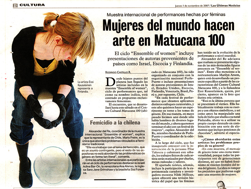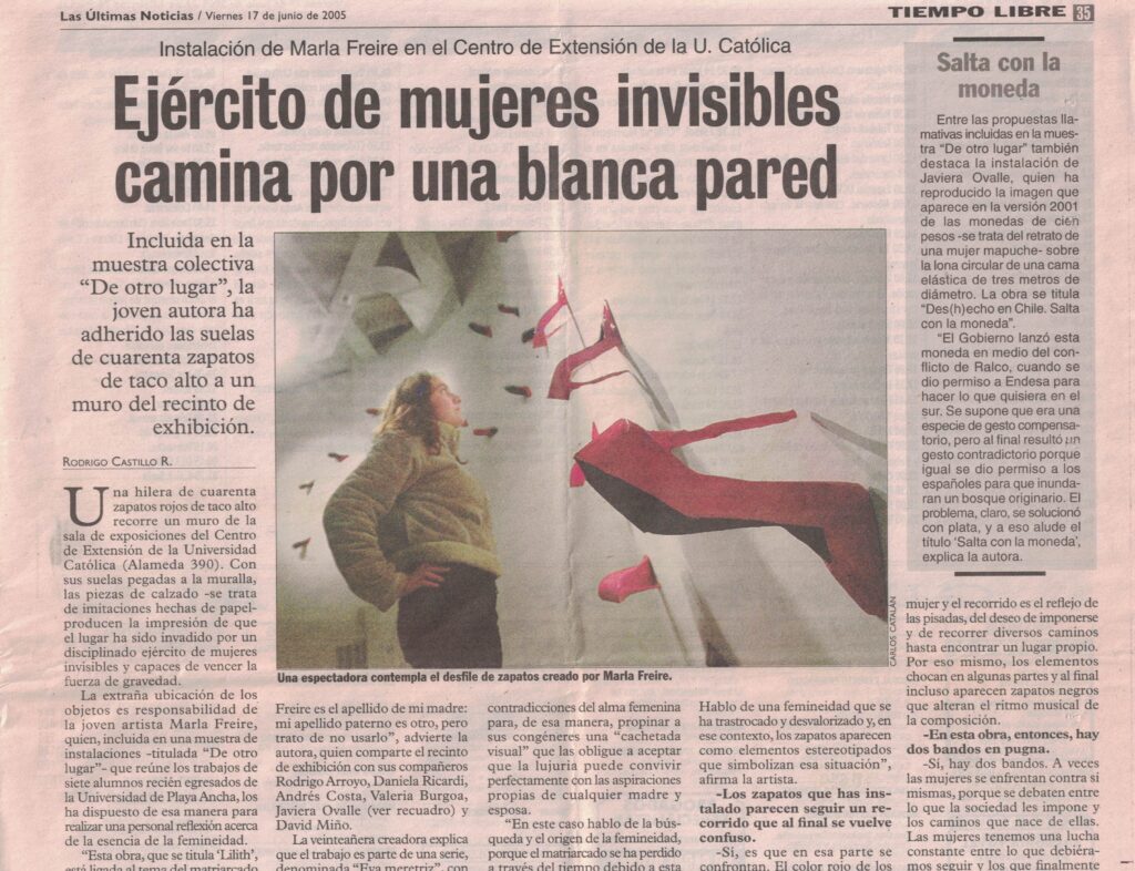 “Ejército de Mujeres invisibles camina por una blanca pared”. Las Últimas Noticias, 17 de junio de 2005. (aqui va el pdf descargable, no hay link de esta noticia)